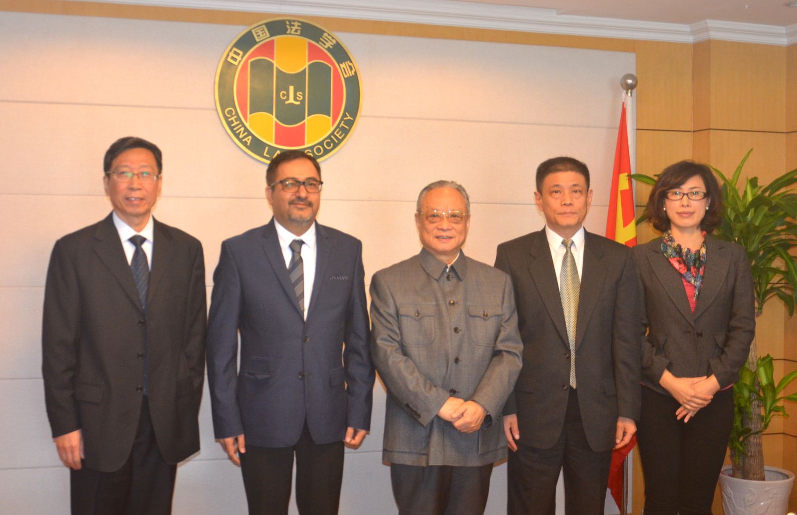 中國法學會辦公室主任紀大新與外聯部副主任楊小平陪同會見。