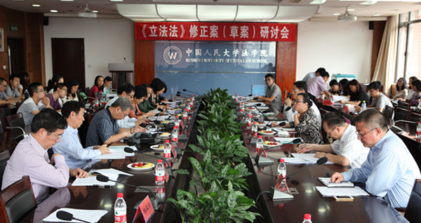 2014年9月17日下午,《立法法修正案(草案)》研討會在中國人民大學法學院召開。受全國人大常委會法工委的委托,中國法學會特組織專家對《立法法修正案(草案)》提出修改意見。研討會由中國法學會副會長、中國社科院法學所所長李林研究員主持。中國社科院法學所副所長莫紀宏教授,中國政法大學法學院舒國瀅教授、劉莘教授、王稱心教授、侯淑雯教授,中國人民大學法學院張志銘教授、徐孟洲教授、王軼教授、馮玉軍教授,中共中央黨校政法部封麗霞教授,中國法學會立法學研究會秘書長劉一杰,國務院法制辦秘書行政司綜合處齊倩倩副處長等專家學者參加了研討會。本次會議由中國法學會研究部和中國法學會立法法學研究會共同承辦。