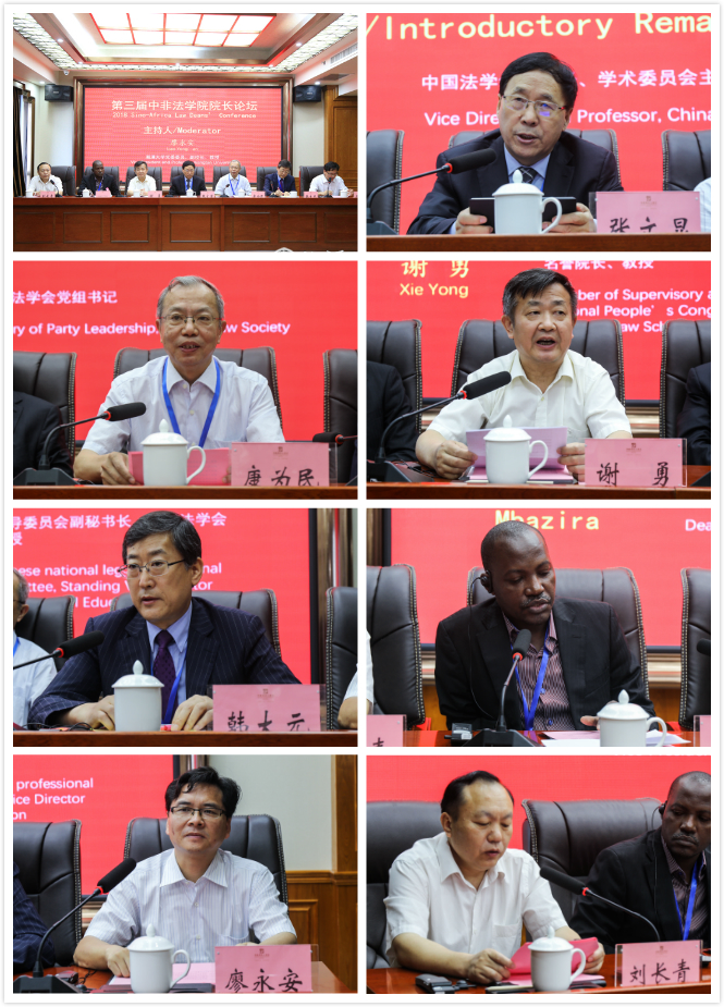 在主辦單位、承辦單位的共同組織籌劃下,本次會議邀請了來自南非開普敦大學法學院、比勒陀尼亞大學法學院、肯尼亞斯特拉斯莫爾法學院、埃塞俄比亞麥克萊大學法學院、埃塞俄比亞貢德爾大學法學院、烏干達麥克雷雷大學法學院、烏干達教會大學法學院、喀麥隆大學法學院、坦桑尼亞開放大學法學院、塞舌爾大學法學院、津巴布韋大學法學院等非洲著名高校的15名法學院院長參會。同時,還有來自中國人民大學、中國政法大學、中國社會科學院、中南財經政法大學、清華大學、對外經貿大學、吉林大學等20余所知名高校和科研院所的法學院院長、專家學者約50人出席了本屆論壇。