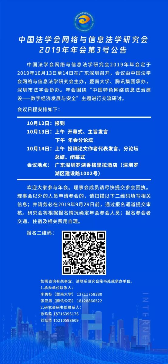 中國法學會網絡與信息法學研究會2019年年會第3號公告