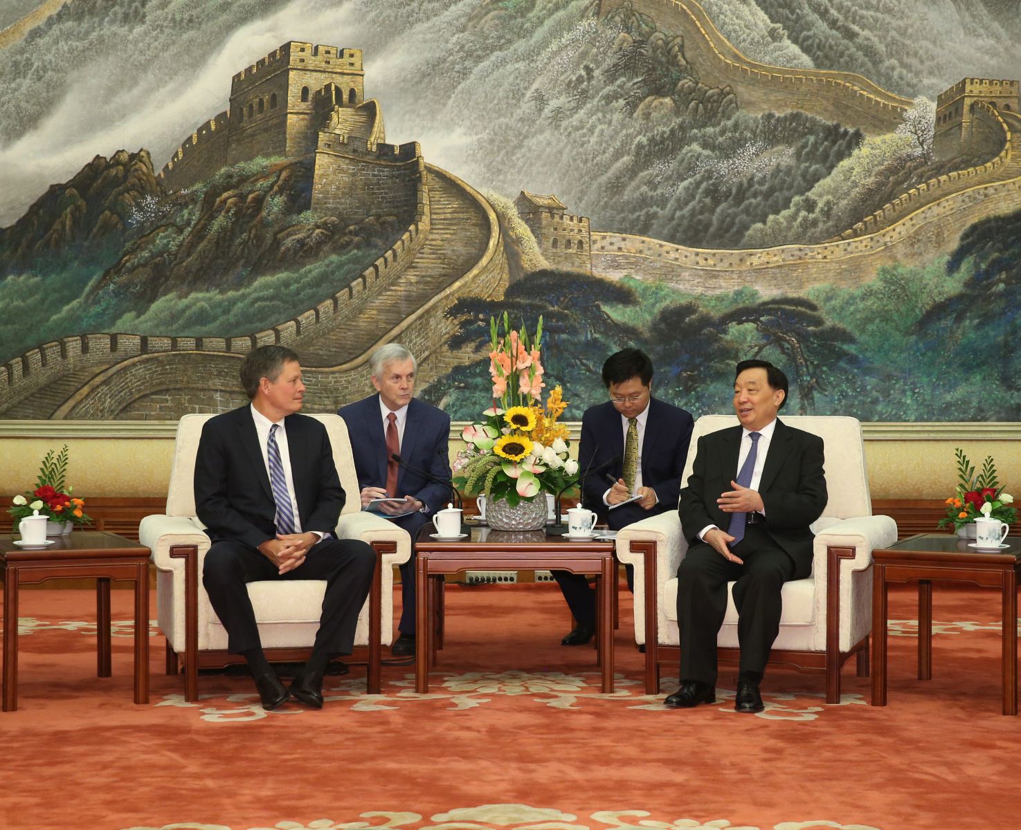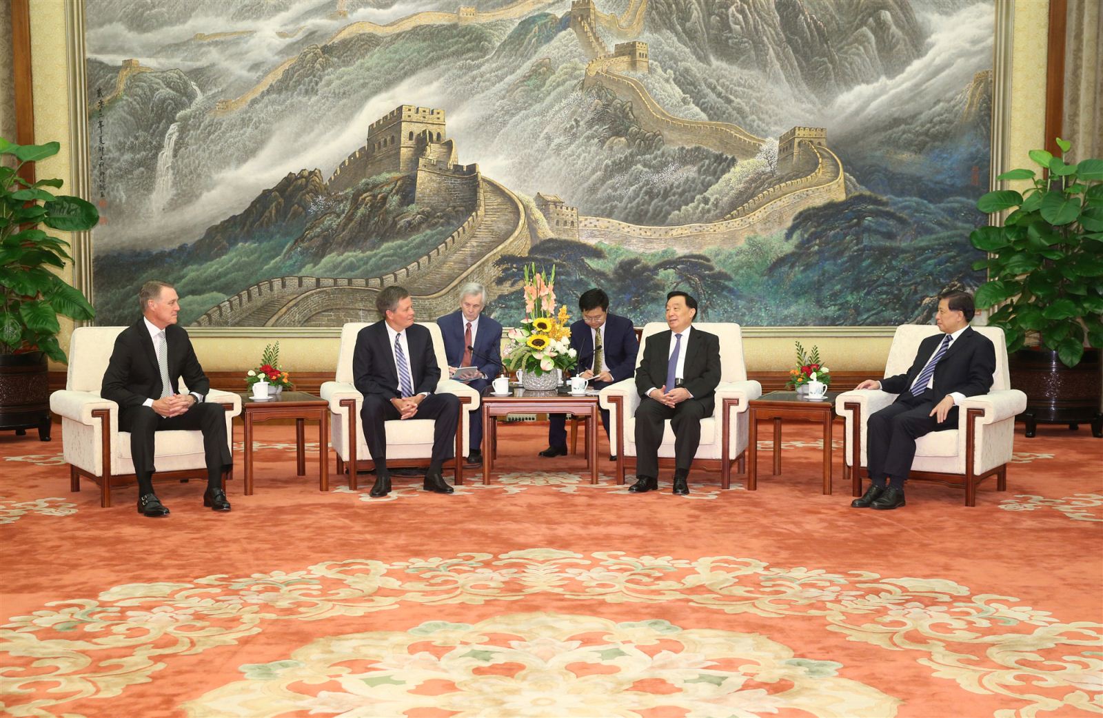 9月2日,中共中央政治局委員、全國人大常委會副委員長、中國法學會會長王晨在京會見美國國會參議院“美中工作小組”共同主席戴恩斯參議員一行。