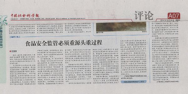 ? ? 法律信息部副主任王偉國(guó)在《中國(guó)社會(huì)科學(xué)報(bào)》(2014年10月10日第654期A07評(píng)論版)撰文《食品安全監(jiān)管必須重源頭重過程》,該文從福喜過期肉、火堿泡制“美白豬蹄”等事件分析食品安全監(jiān)管失靈的深層原因,并提出必須在《食品安全法》的修法中進(jìn)一步強(qiáng)化過程監(jiān)管為主的執(zhí)法能力建設(shè),以確保及時(shí)發(fā)現(xiàn)隱患,有效預(yù)防問題的發(fā)生。