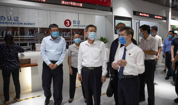 9月13日,全國人大常委會副委員長郝明金率公證法執法檢查組在北京方圓公證處檢查。(北京市司法局供圖)