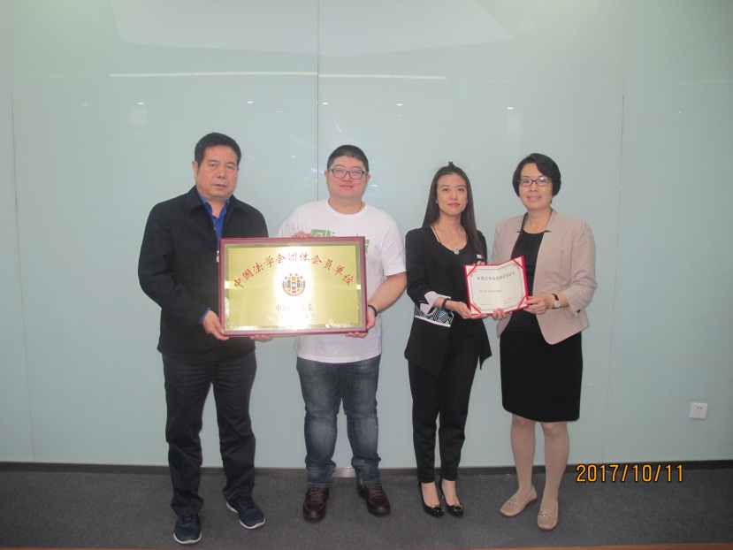中國法學會參加授牌活動的有中國法學會會員部主任張所菲,中國法律年鑒社總編諸葛平平、副社長伍曉梅,中國法學會會員部副巡視員王益民、副巡視員崔秀娟,會員工作處副處長李剛。
