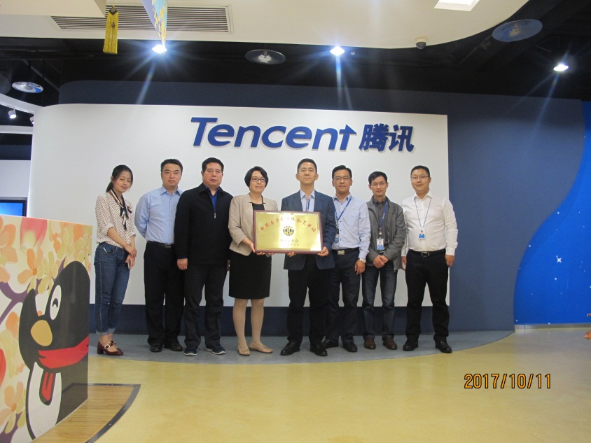 會員部主任張所菲、副巡視員王益民為騰訊集團法律事業部授牌,騰訊公司法務副總裁江波、騰訊研究院資深研究員魏世軍、騰訊公司法務綜合部視頻維權總監劉鄭操、騰訊研究院高級研究院田小軍參加授牌