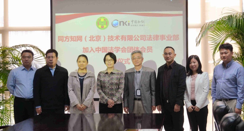 會員部主任張所菲、副巡視員王益民,中國法律年鑒社副社長伍曉梅為同方知網法律事業部授牌,同方知網(北京)技術有限公司副總經理暨《中國學術期刊(光盤版)》電子雜志社有限公司總經理劉學東、同方知網黨政與社團知識管理公司總經理謝磊、同方知網黨政與社團知識管理公司副總經理馮文丹、同方知網法律事業部經理周萌枝參加授牌