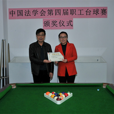 近日,中國法學會第四屆(2017年度)職工臺球賽頒獎儀式在學會舉行。今年職工臺球賽男子組共有21名職工報名參賽,女子組共有4名職工報名參賽,報名參賽人數(shù)較上屆有所下降。今年在賽制設置上,除了原有的男子單打、女子單打、男子團體賽保持不變外,新增加了男子循環(huán)賽。