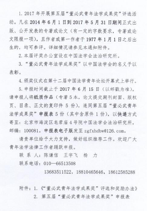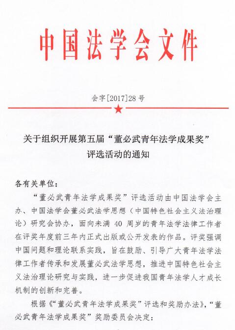 關于組織開展第五屆“董必武青年法學成果獎”評選活動的通知,DOC